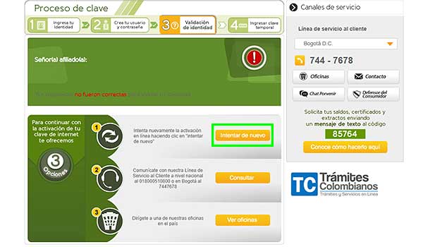 - Elegir una de las tres opciones que se muestran en pantalla para confirmar la identidad del usuario en caso de haber cometido algún error en el paso anterior.